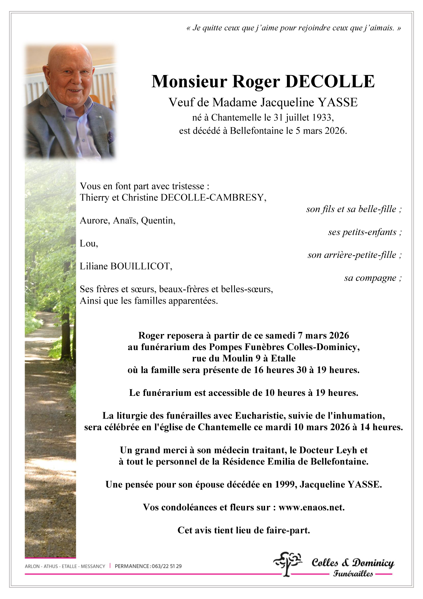 Décédé à Bellefontaine (Lux.) (6730) le jeudi 5 mars 2026 à l'âge de 92 ans