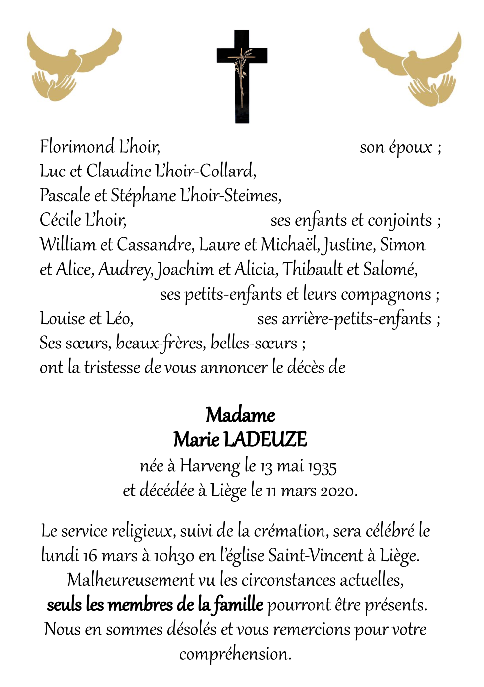 Overleden te Liège (4020) op woensdag 11 maart 2020 op 84-jarige leeftijd
