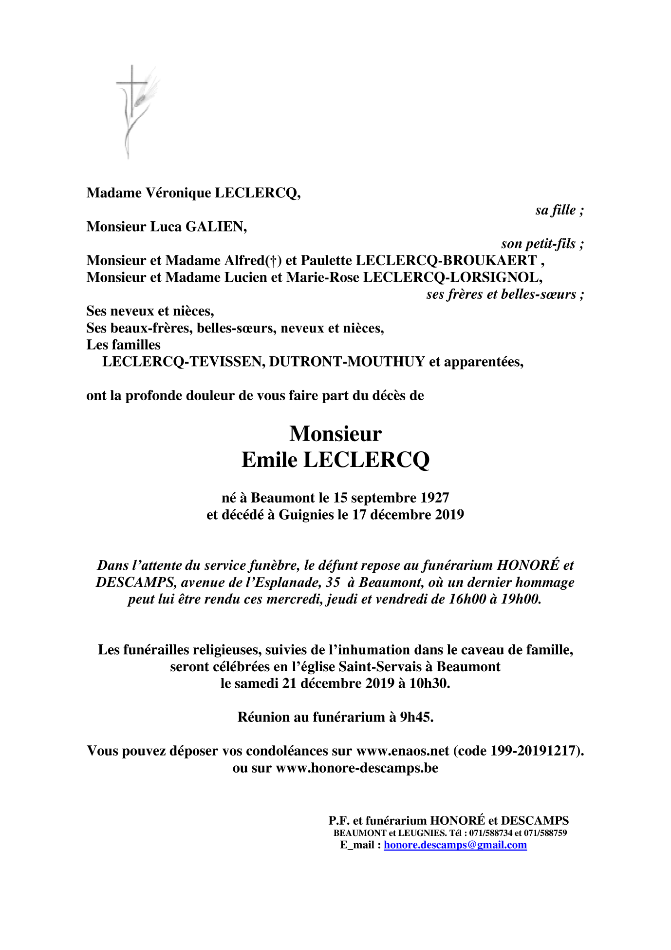 Fallecido en Tournai (7500) el martes, 17 de diciembre de 2019 a la edad de 92 años