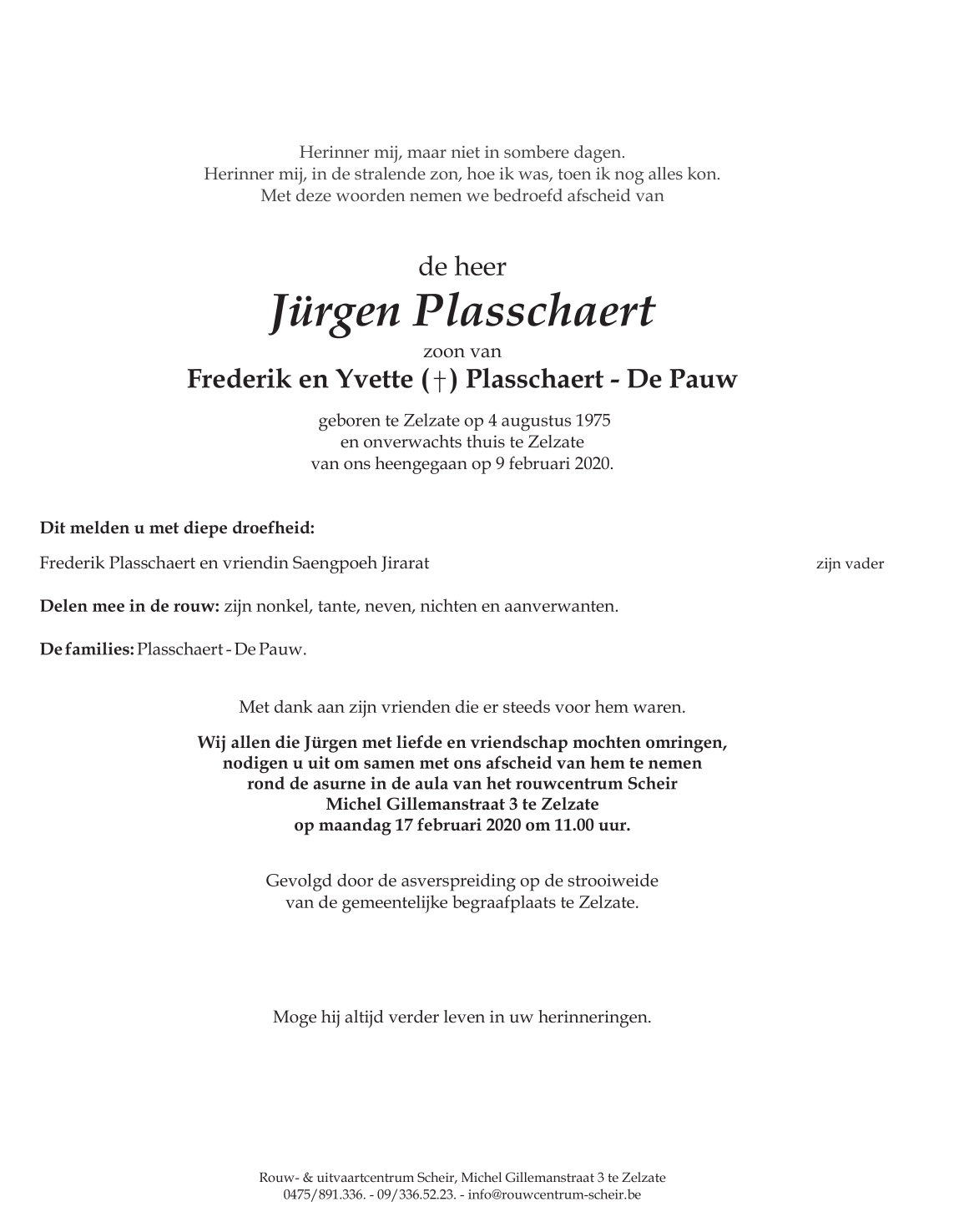 Fallecido en Zelzate (9060) el domingo, 9 de febrero de 2020 a la edad de 44 años