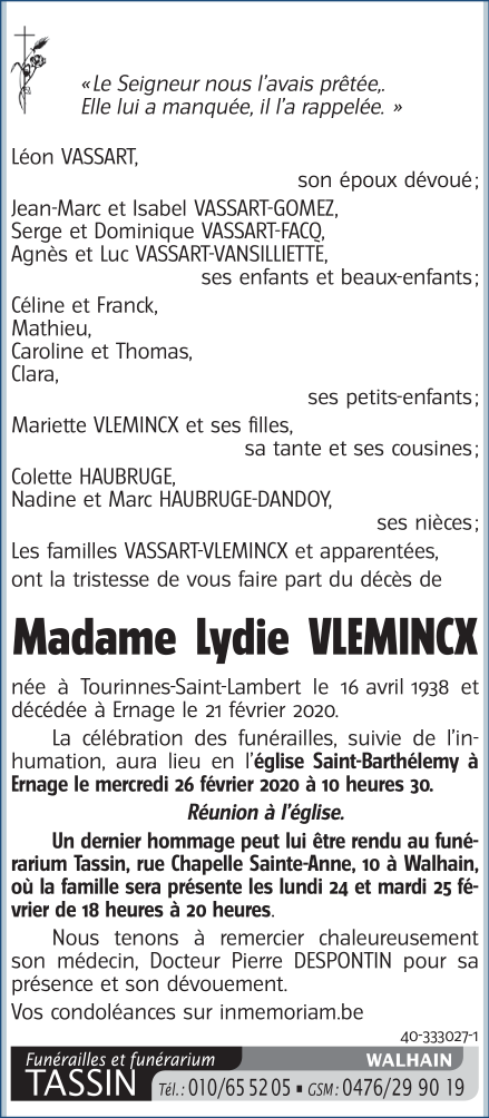 Née à Tourinnes-Saint-Lambert (1457) le samedi 16 avril 1938
