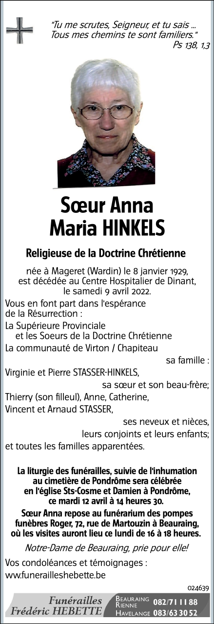 Soeur Anna Maria HINKELS