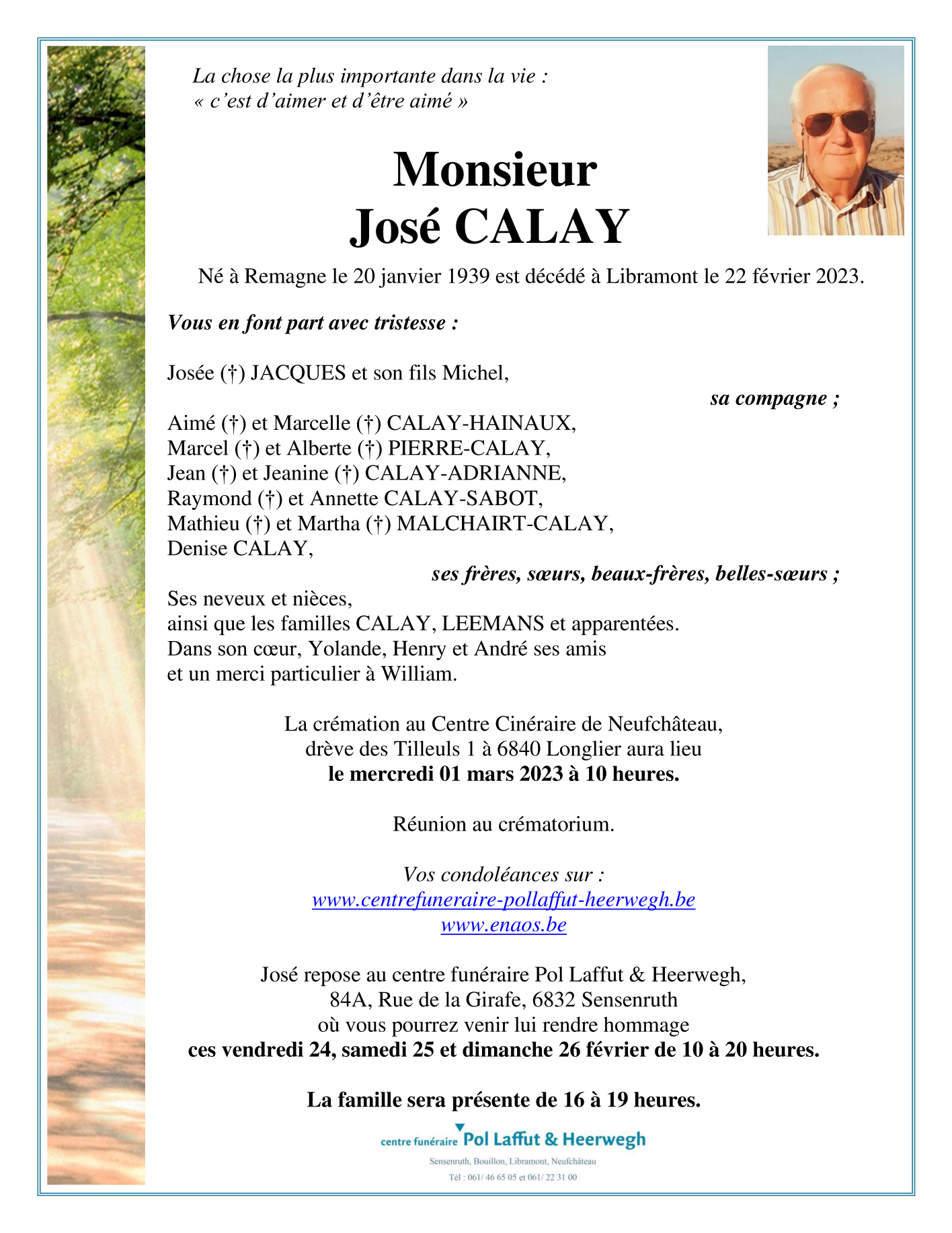 Fallecido en Libramont-Chevigny (6800) el miércoles, 22 de febrero de 2023 a la edad de 84 años