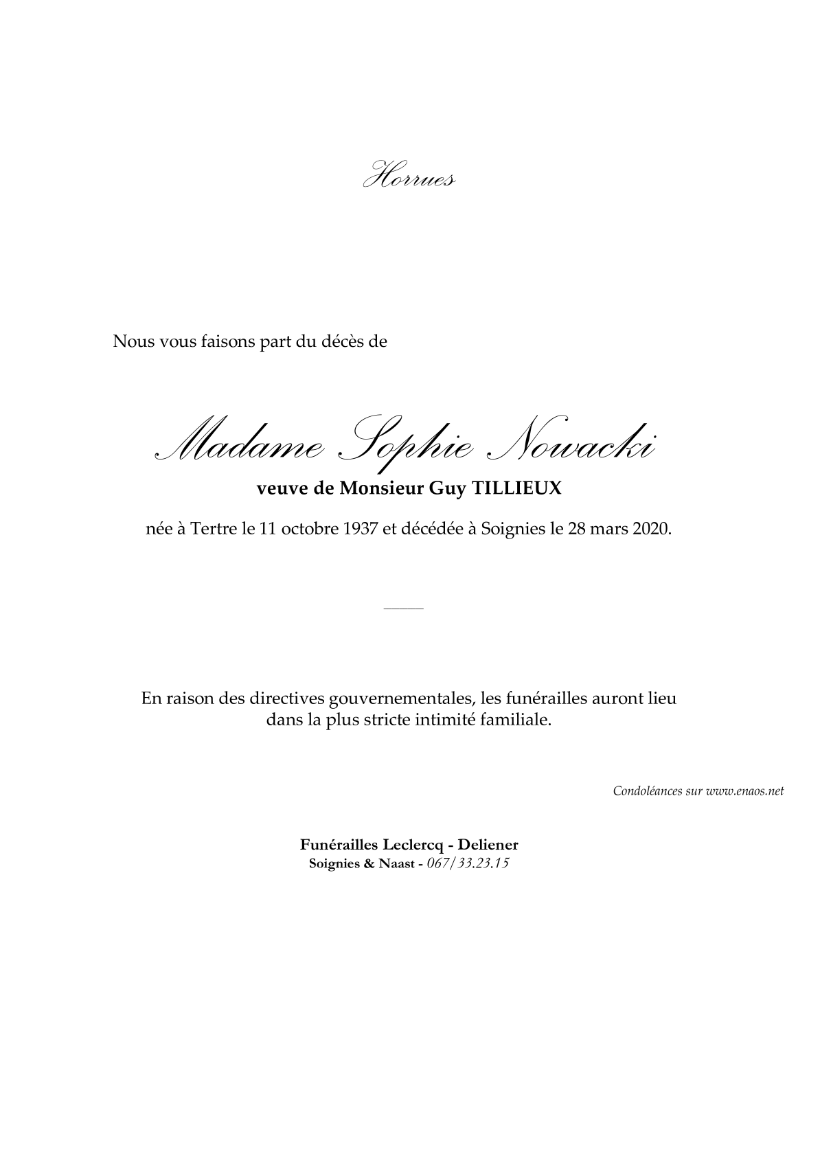 Fallecida en Soignies (7060) el sábado, 28 de marzo de 2020 a la edad de 82 años