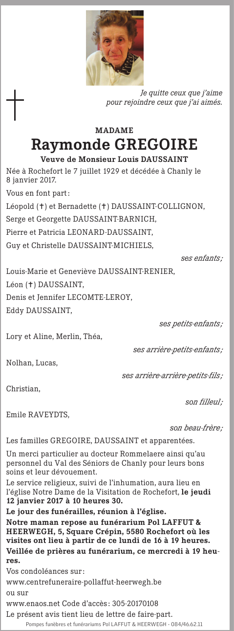 Overleden te Chanly (6921) op zondag 8 januari 2017 op 87-jarige leeftijd