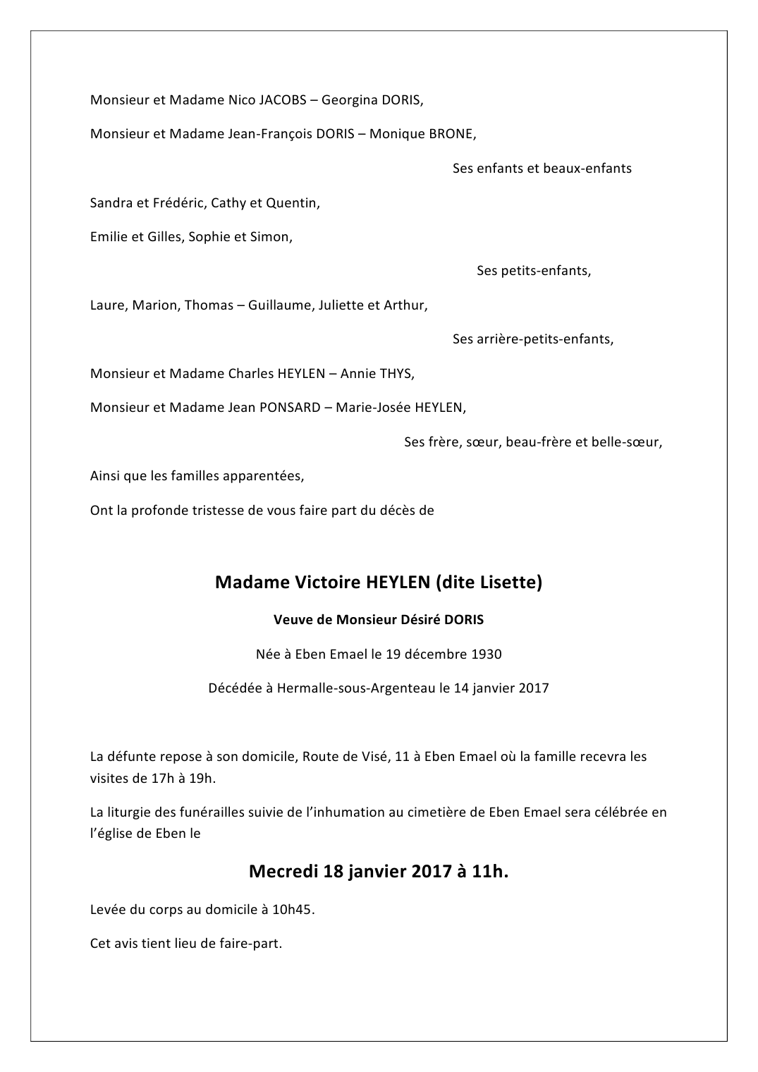 Overleden te Hermalle-sous-Argenteau (4681) op zaterdag 14 januari 2017 op 86-jarige leeftijd