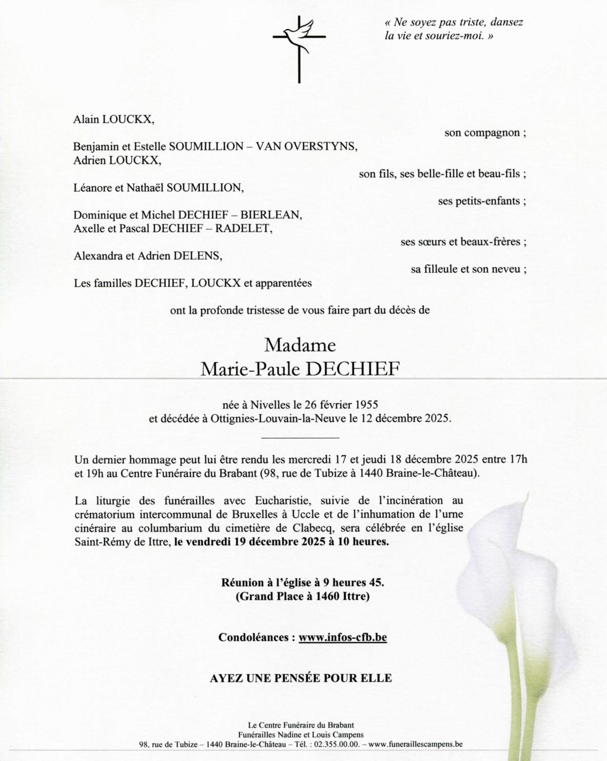 Overleden te Ottignies (1340) op vrijdag 12 december 2025 op 70-jarige leeftijd