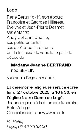 Died in Legé (44650, France) on 23 October 2025 at the age of 97 years