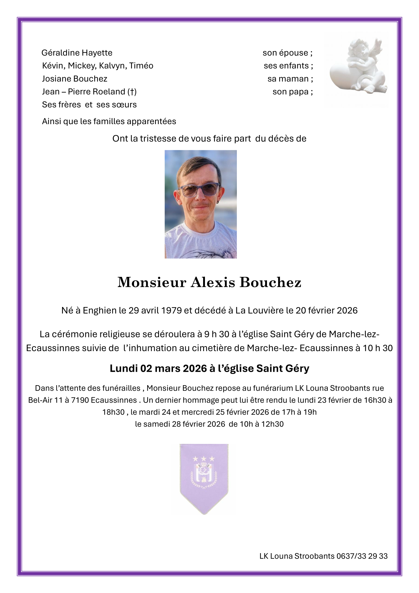 Décédé à La Louvière (7100) le vendredi 20 février 2026 à l'âge de 46 ans