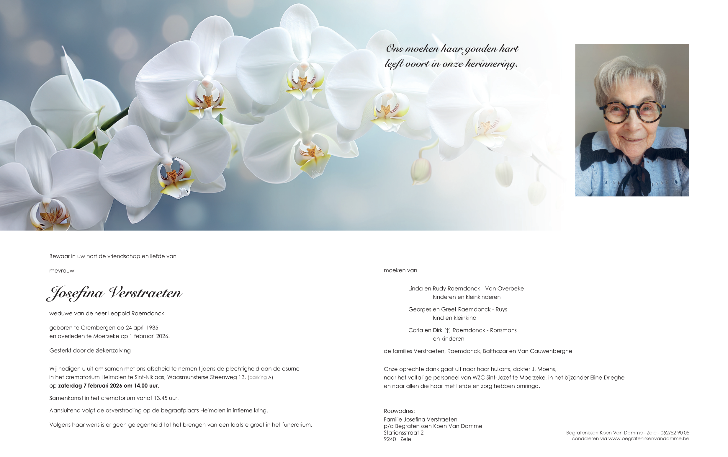 Décédée à Moerzeke (9220) le dimanche 1 février 2026 à l'âge de 90 ans