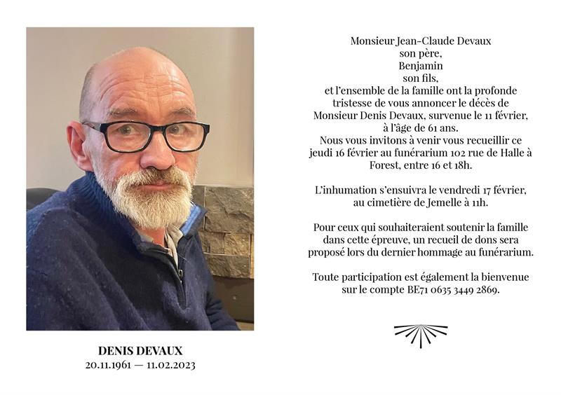 Décédé à Saint-Gilles (1060) le samedi 11 février 2023 à l'âge de 61 ans