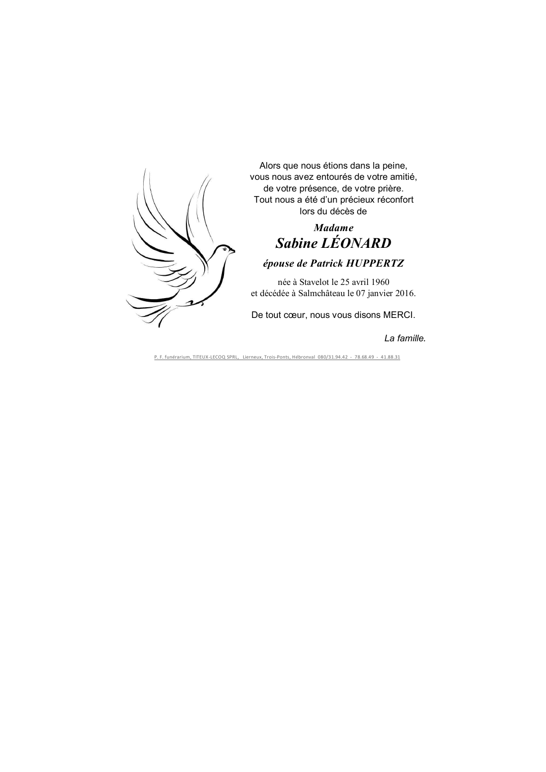 Overleden te Salmchâteau (6690) op donderdag 7 januari 2016 op 55-jarige leeftijd