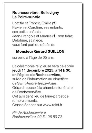 Décédé à La Roche-sur-Yon (85000, France) le dimanche 7 décembre 2025 à l'âge de 65 ans