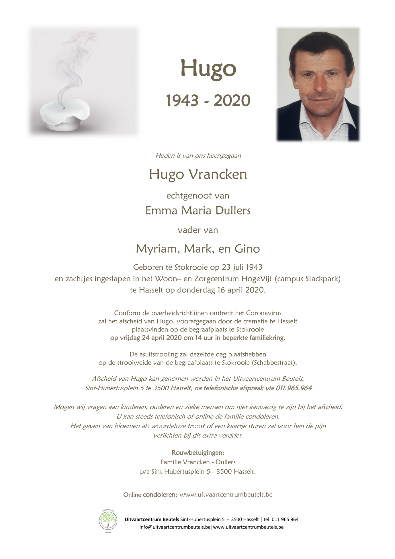 Décédée à Hasselt (3500) le jeudi 16 avril 2020 à l'âge de 76 ans