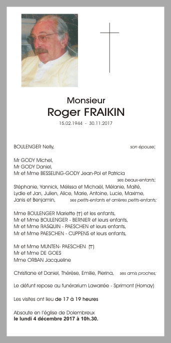 Echtgenoot van Madame Nelly FRAIKIN née BOULENGER
