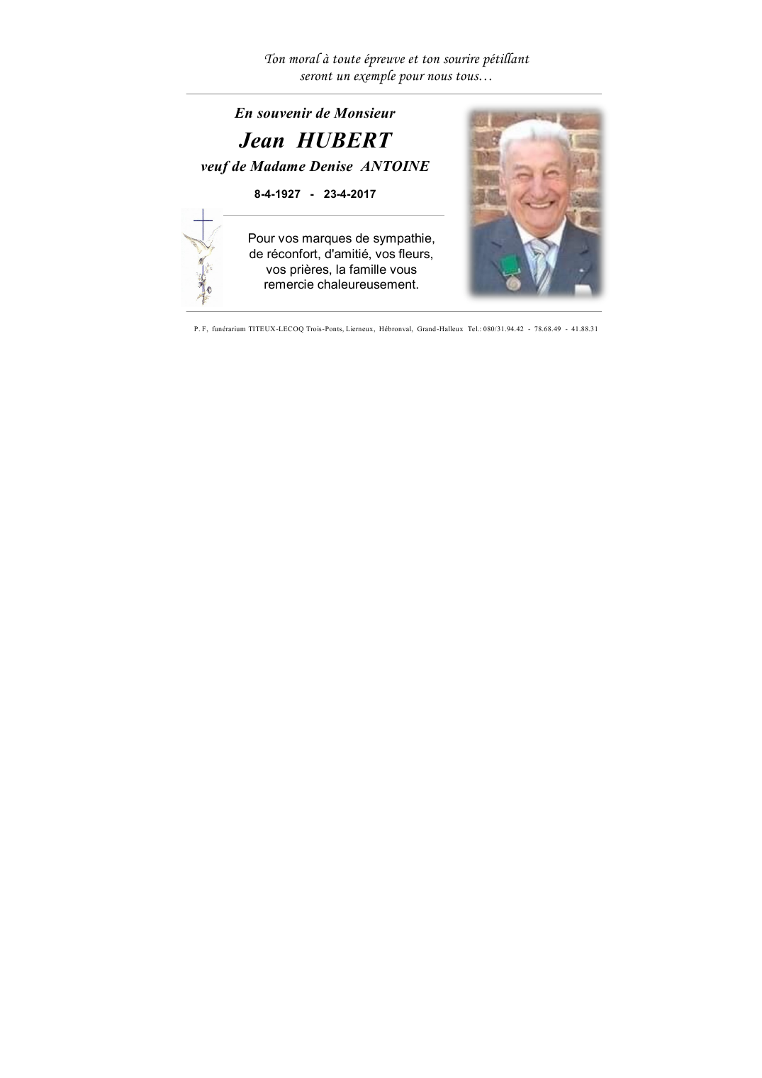 Fallecido en Werbomont (4190) el domingo, 23 de abril de 2017 a la edad de 90 años