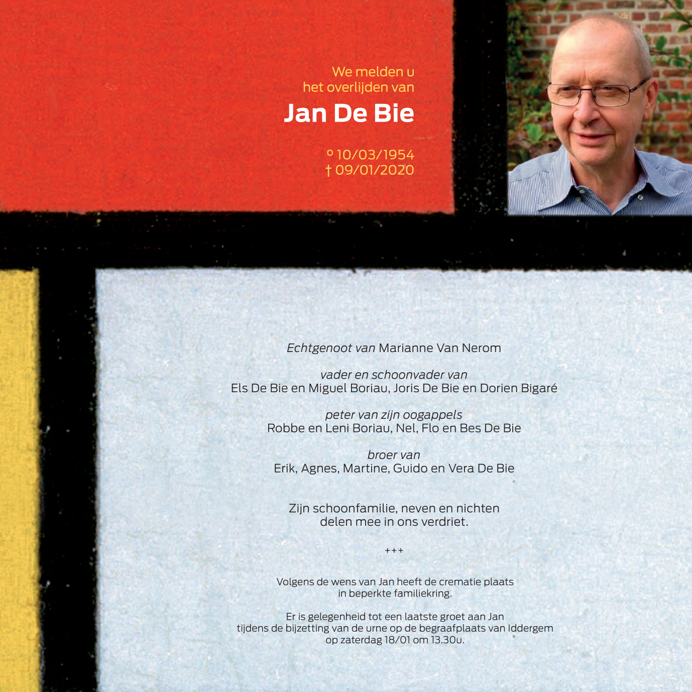 Overleden te Iddergem (9472) op donderdag 9 januari 2020 op 65-jarige leeftijd