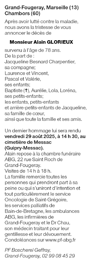 Décédé à Bain-de-Bretagne (35470, France) le lundi 25 août 2025 à l'âge de 78 ans