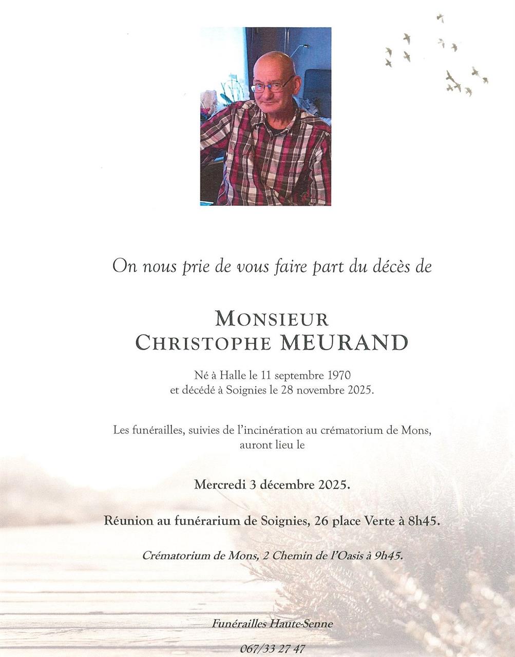 Décédé à Soignies (7060) le vendredi 28 novembre 2025 à l'âge de 55 ans