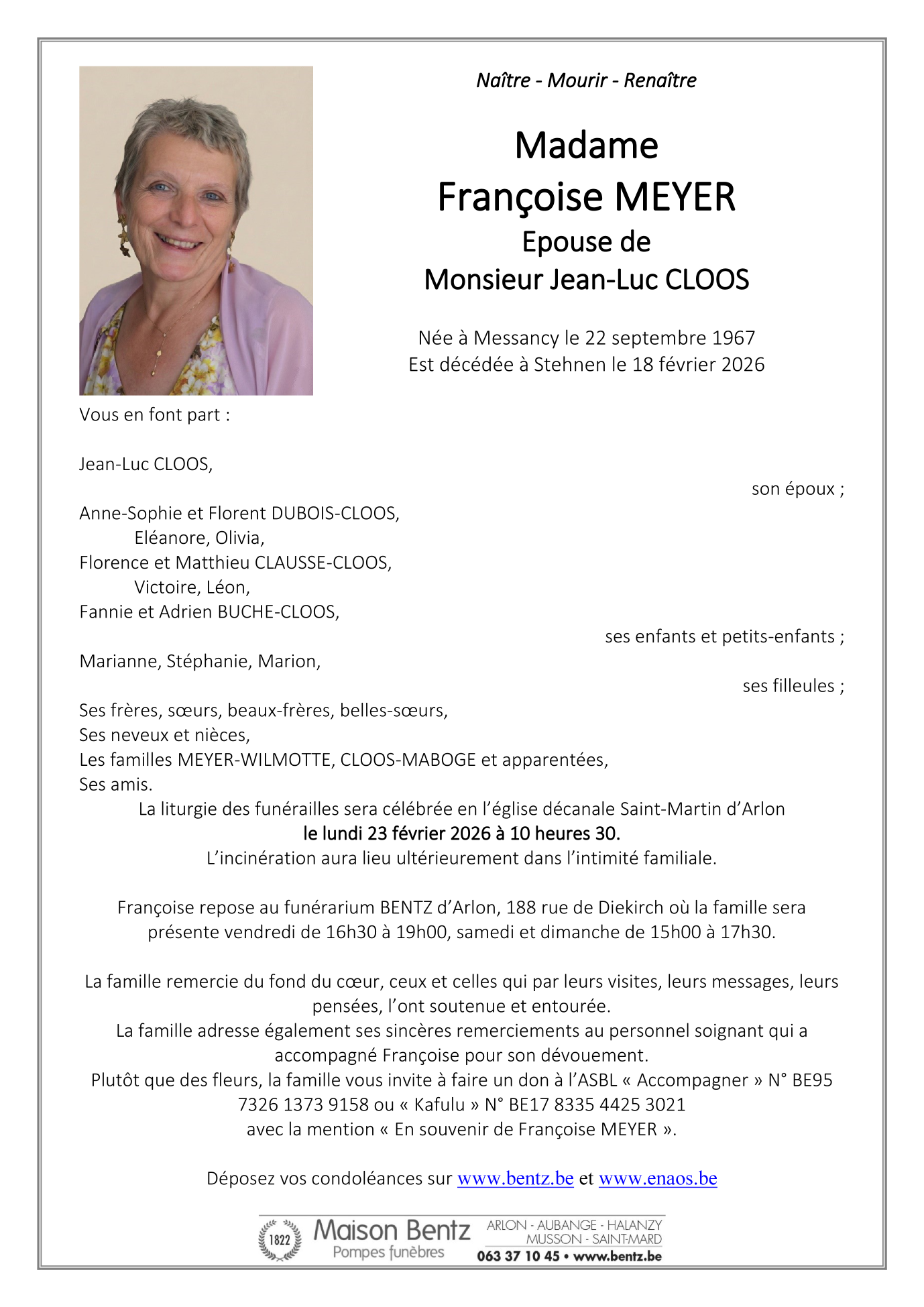 Née à Messancy (6780) le vendredi 22 septembre 1967