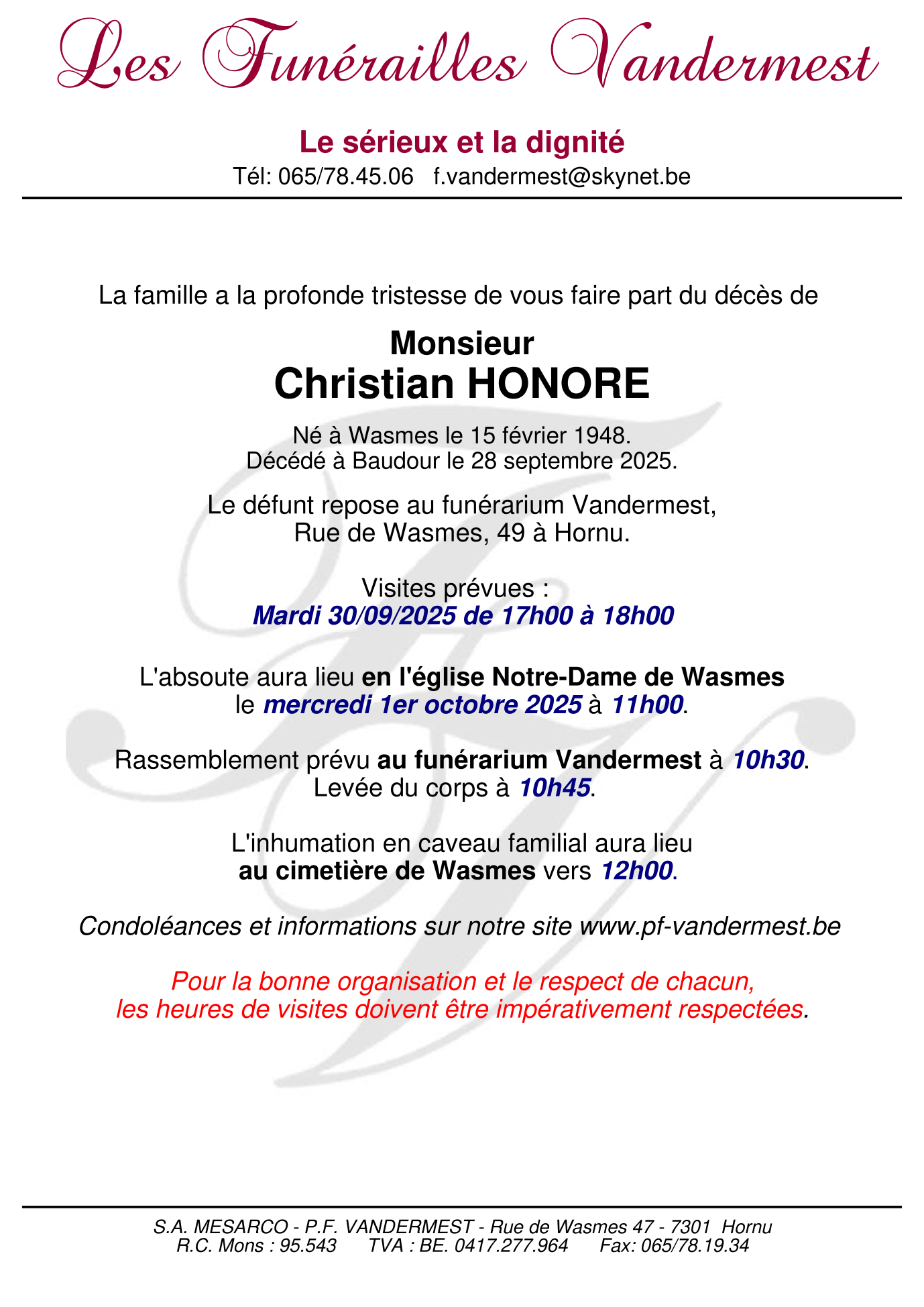 Died in Baudour (7331) on 28 September 2025 at the age of 77 years