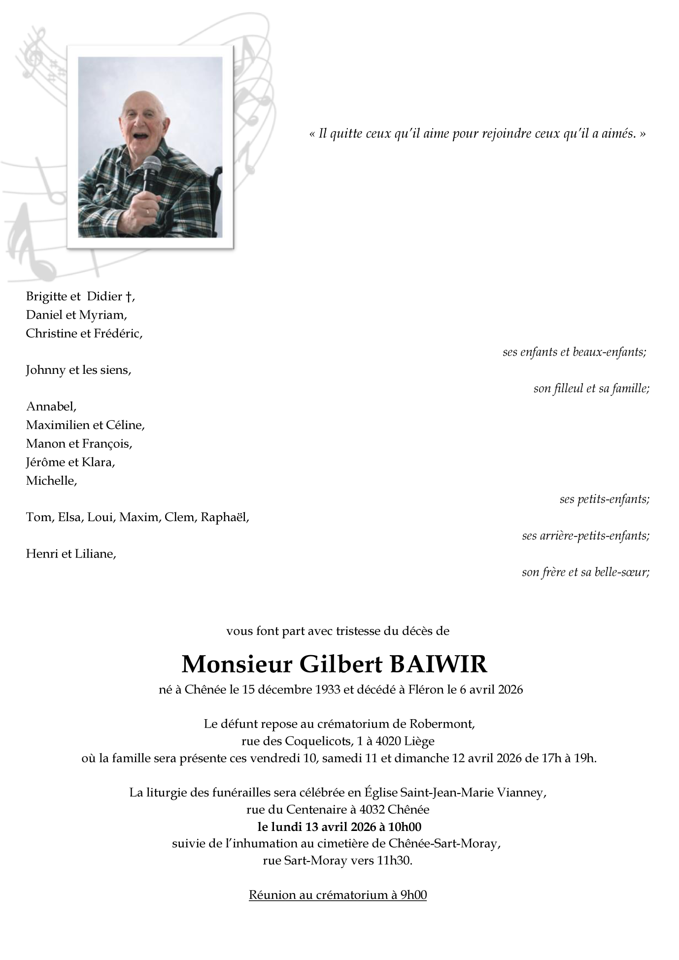 Fallecido en Fléron (4620) el lunes, 6 de abril de 2026 a la edad de 92 años