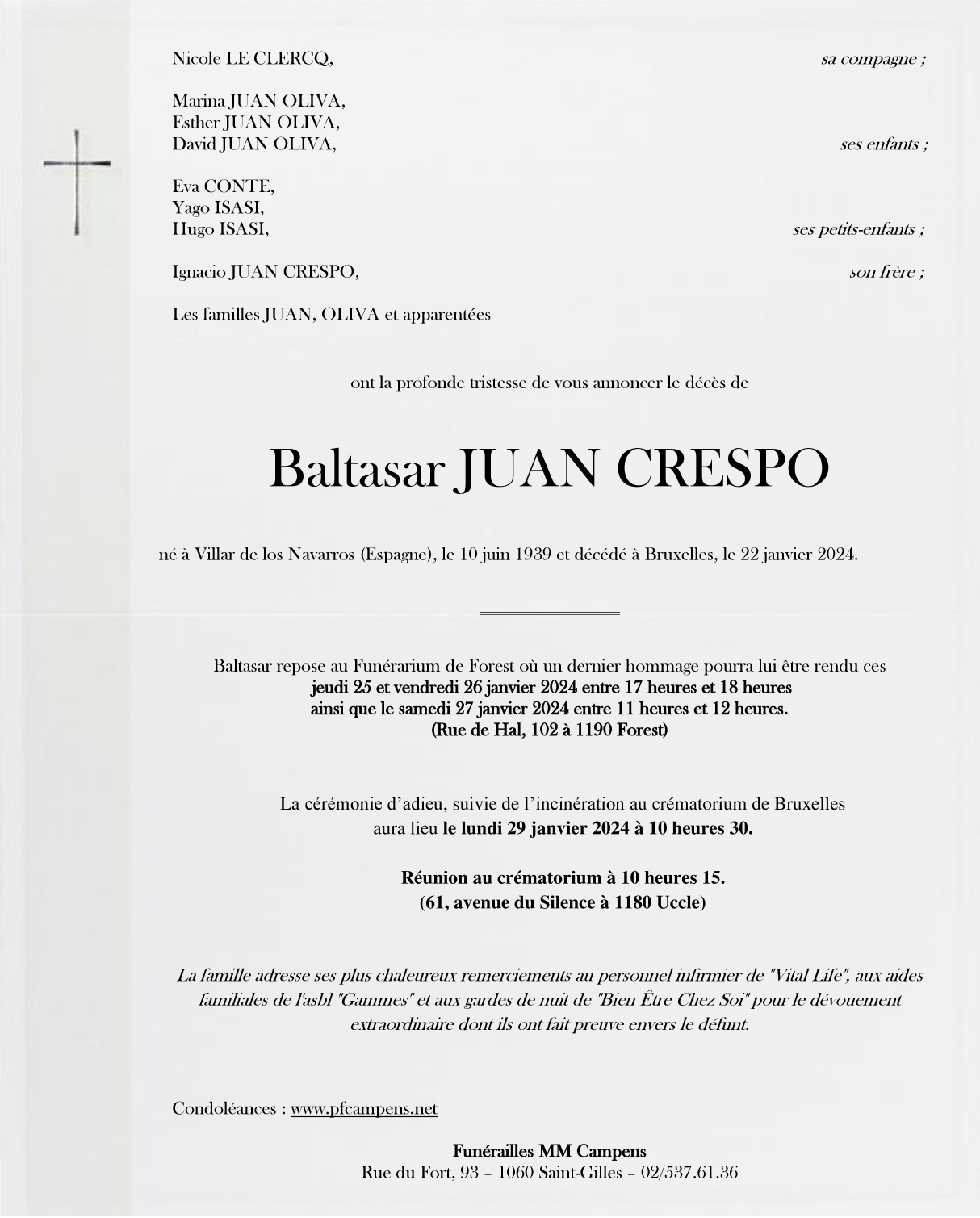 Died in Bruxelles (1000) on 22 January 2024 at the age of 84 years
