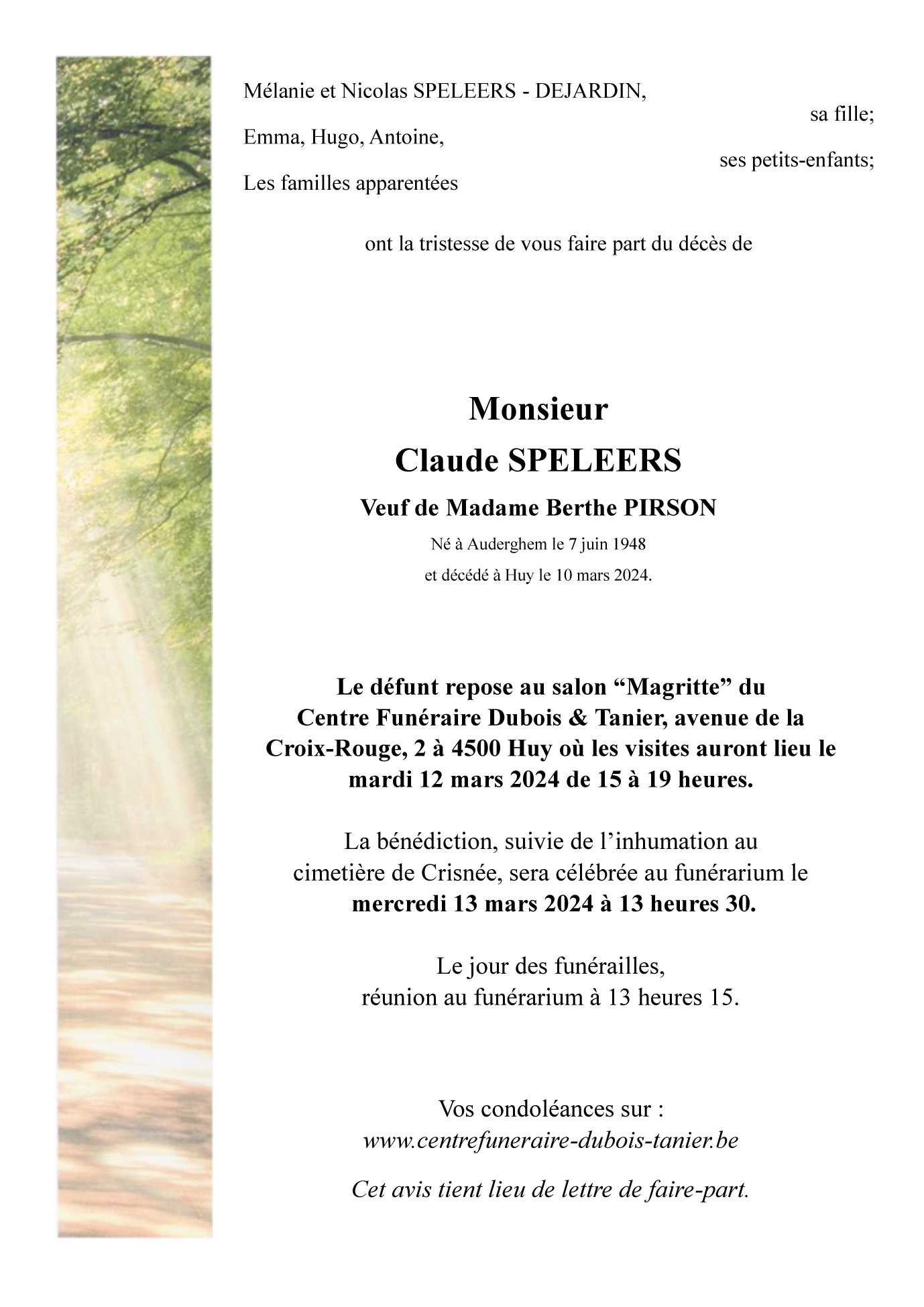 Décédé à Huy (4500) le dimanche 10 mars 2024 à l'âge de 75 ans