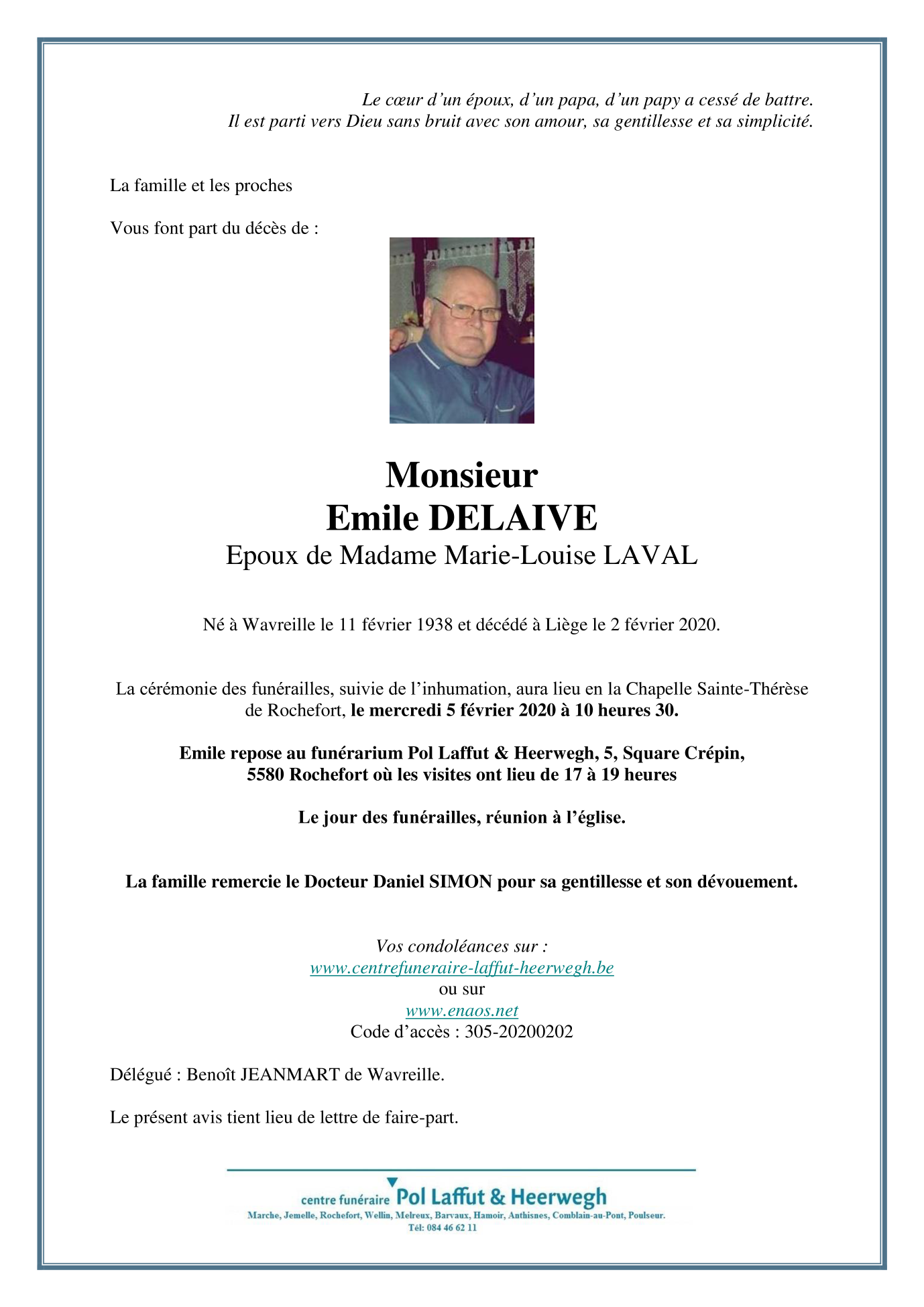 Monsieur Emile DELAIVE