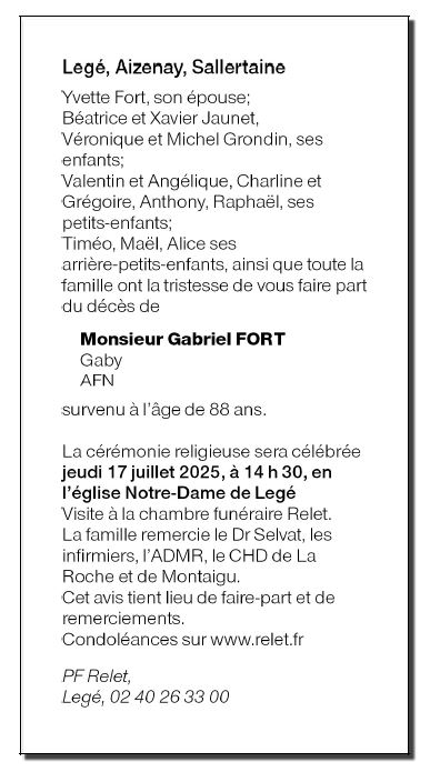Décédé à Montaigu (85600, France) le mardi 15 juillet 2025 à l'âge de 88 ans