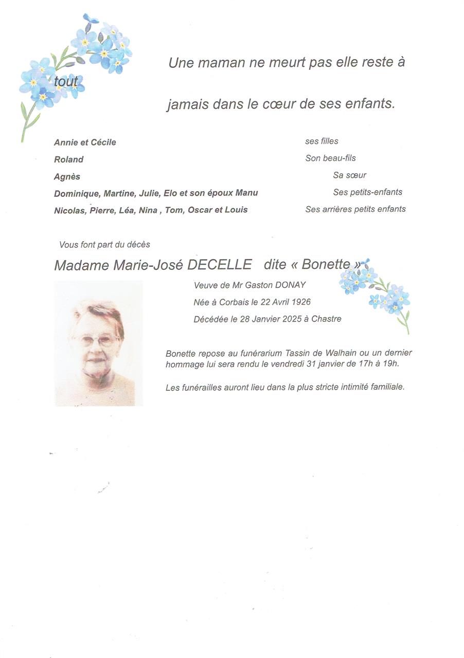 Overleden te Chastre (1450) op dinsdag 28 januari 2025 op 98-jarige leeftijd