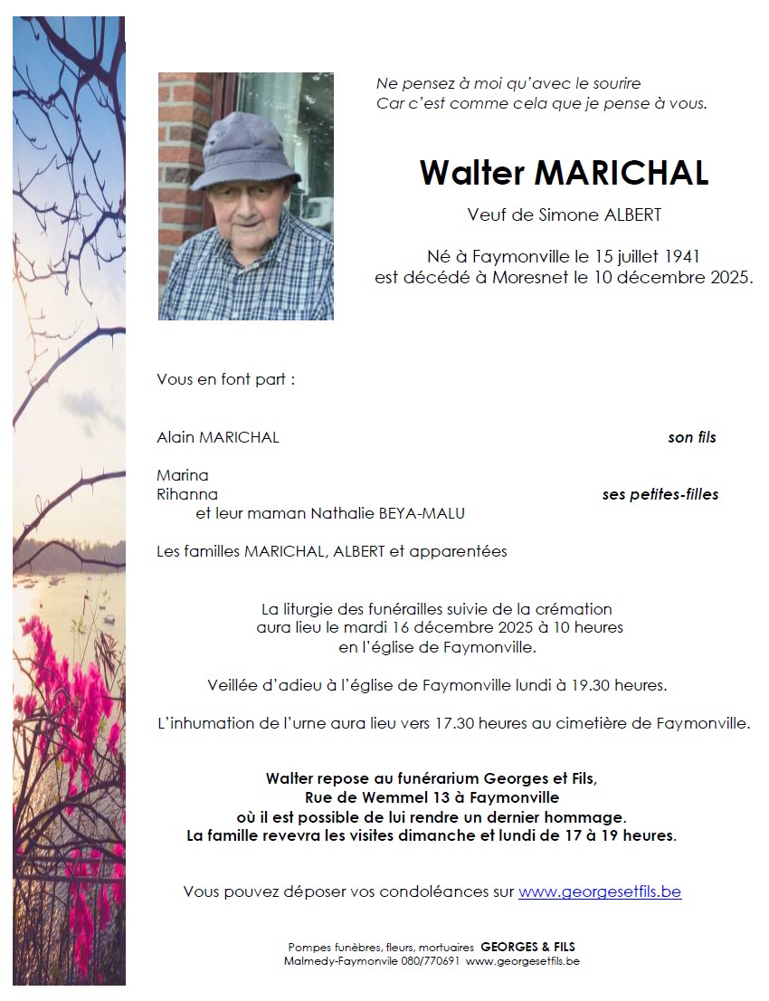 Fallecido en Moresnet (4850) el miércoles, 10 de diciembre de 2025 a la edad de 84 años