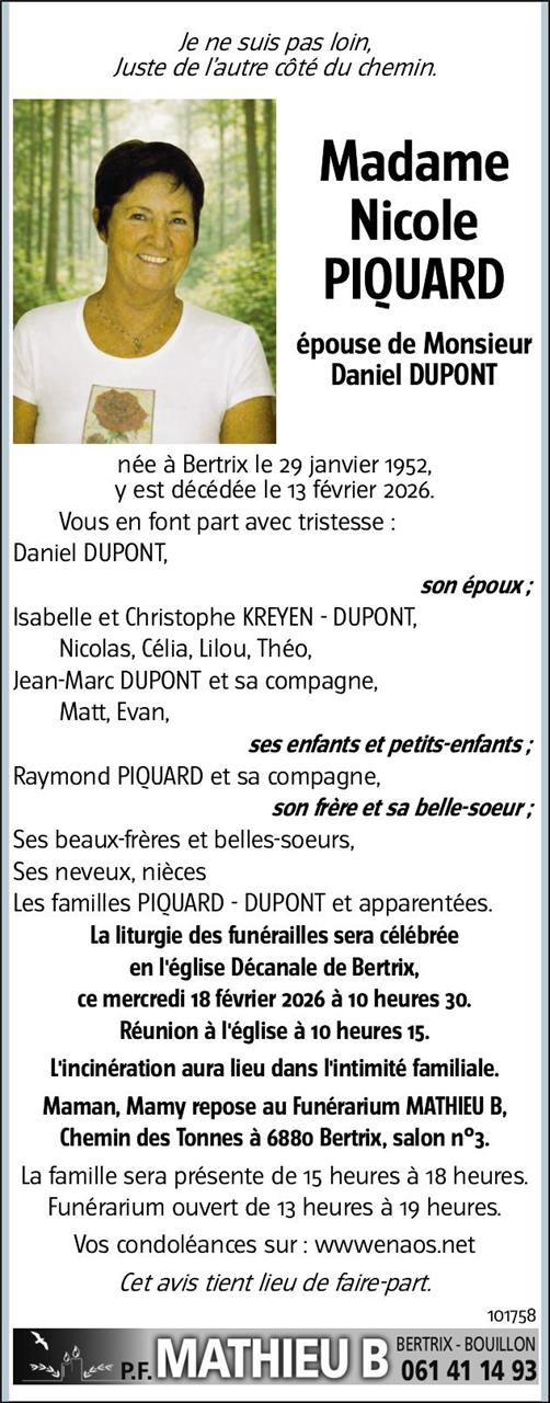 Fallecida en Bertrix (6880) el sábado, 14 de febrero de 2026 a la edad de 74 años
