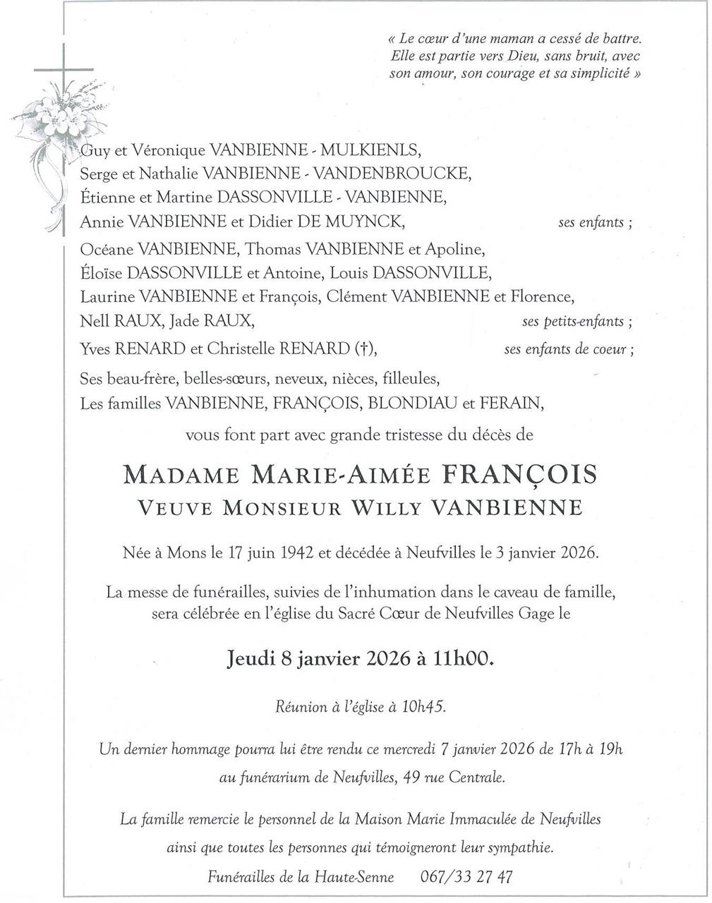 Veuve de Monsieur Willy Vanbienne