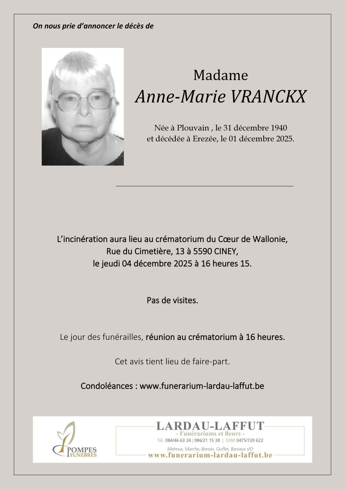 Overleden te Erezée (6997) op maandag 1 december 2025 op 84-jarige leeftijd