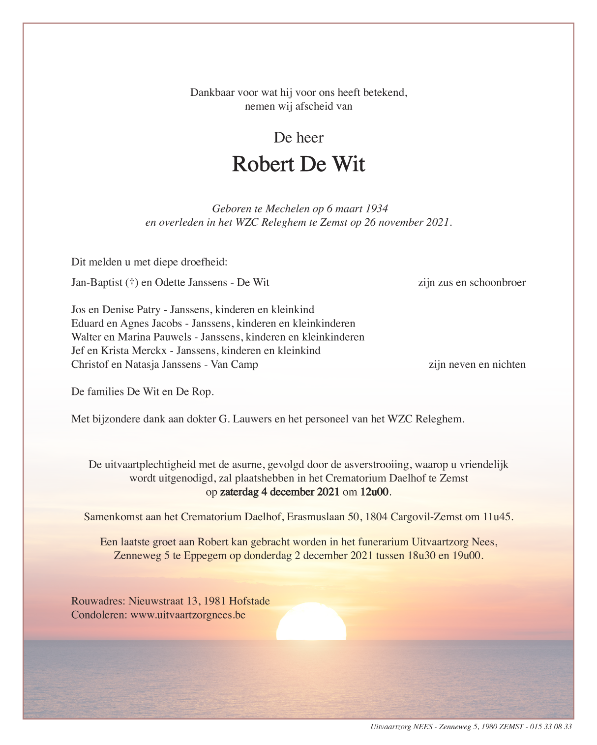 Overleden te Zemst (1980) op vrijdag 26 november 2021 op 87-jarige leeftijd