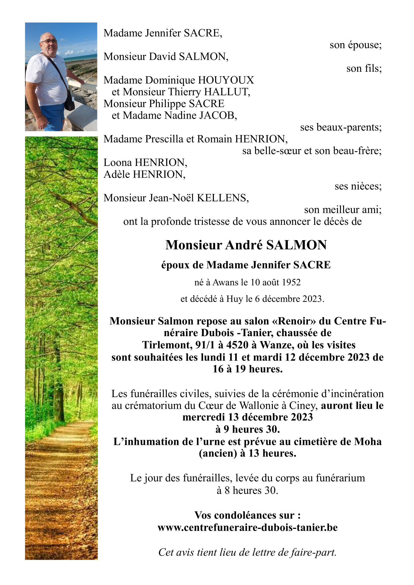 Died in Huy (4500) on 06 December 2023 at the age of 71 years