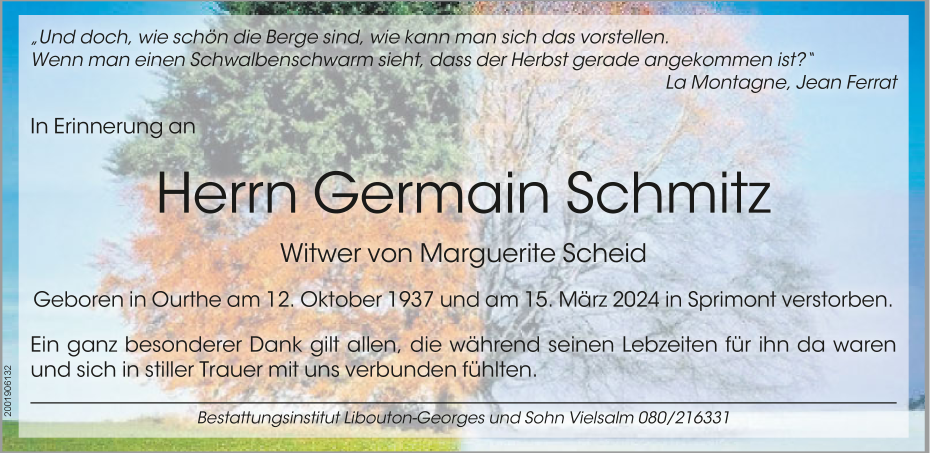 Décédé à Sprimont (4140) le vendredi 15 mars 2024 à l'âge de 86 ans