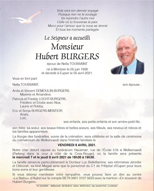 Died in Eupen (4700) on 05 April 2021 at the age of 84 years