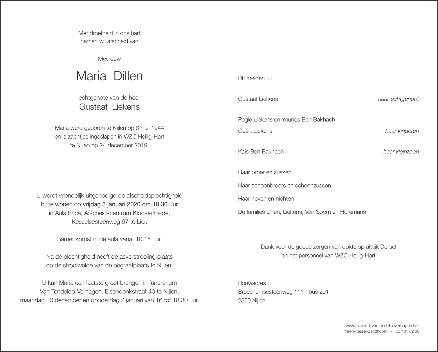 Died in Nijlen (2560) on 24 December 2019 at the age of 75 years