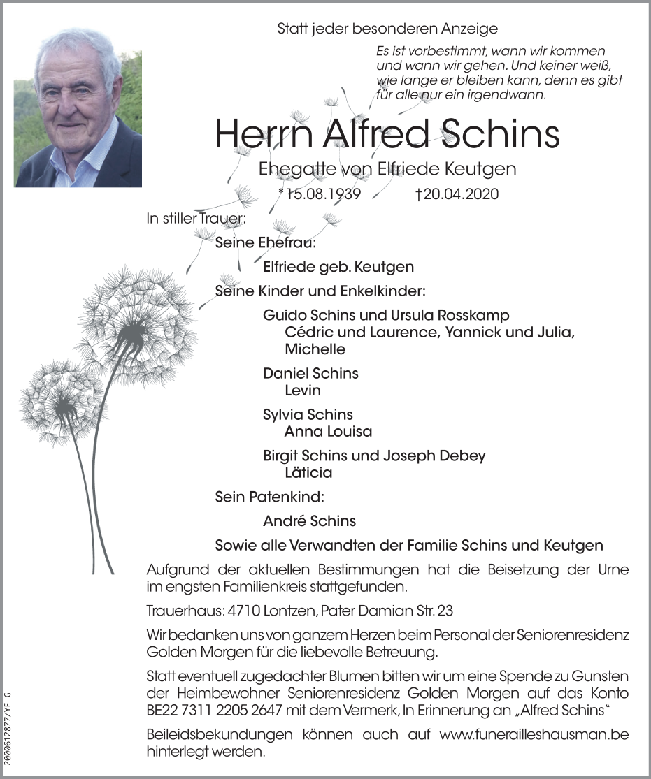 Décédé à Walhorn (4711) le lundi 20 avril 2020 à l'âge de 80 ans
