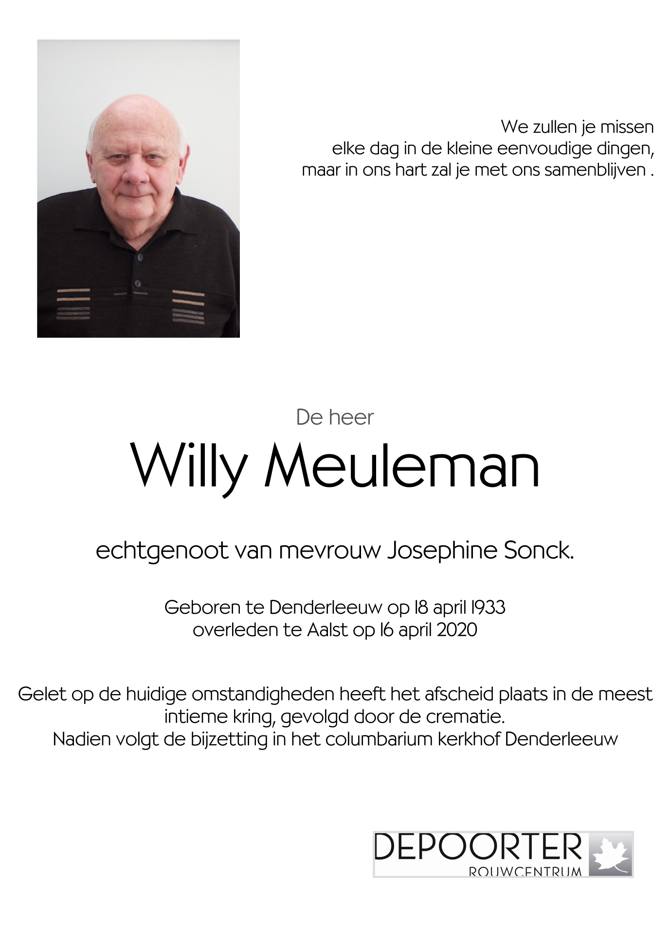 Died in Aalst (9300) on 16 April 2020 at the age of 86 years