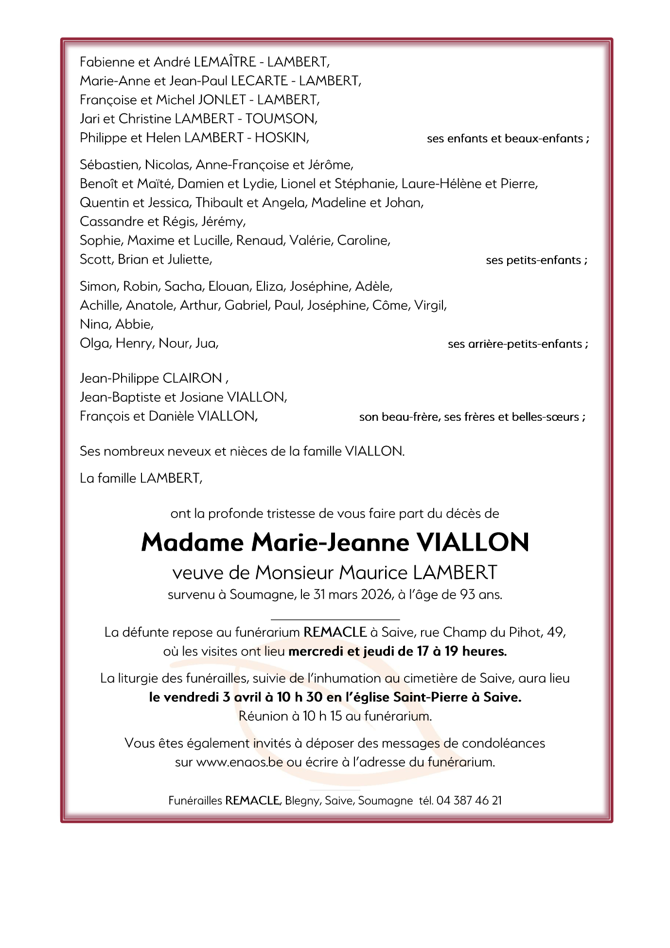 Overleden te Soumagne (4630) op dinsdag 31 maart 2026 op 93-jarige leeftijd