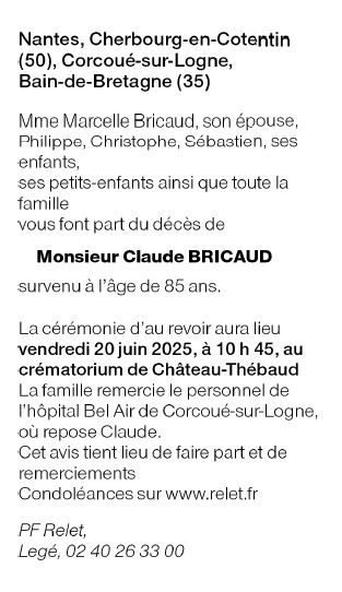 Echtgenoot van Madame Marcelle BRICAUD