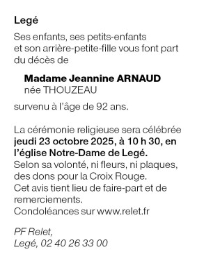 Madame Jeannine ARNAUD née THOUZEAU