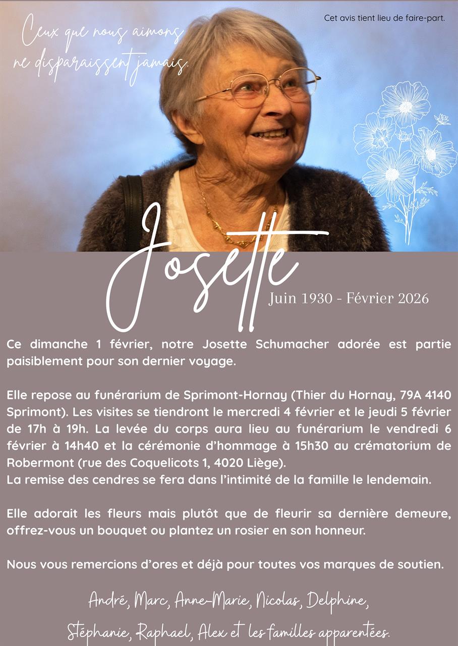 Décédée à Liège (4000) le dimanche 1 février 2026 à l'âge de 95 ans