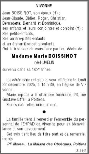 Madame Marie BOISSINOT née HUVELIN