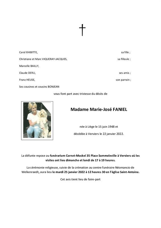 Décédée à Verviers (4800) le samedi 22 janvier 2022 à l'âge de 75 ans