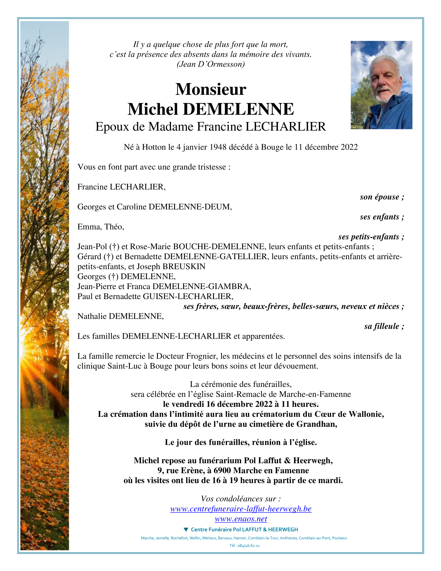 Overleden te Bouge (5004) op zondag 11 december 2022 op 74-jarige leeftijd