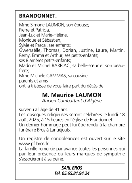 Décédé à Villefranche-de-Rouergue (12200, France) le jeudi 14 août 2025 à l'âge de 90 ans
